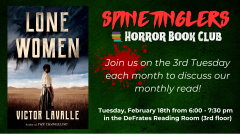 This month's selection is Lone Women by Victor LaValle. The novel follows Adelaide Henry, a young Black woman who carries an enormous steamer trunk wherever she goes---a trunk that can never be opened, because when it is, the people around her start to disappear. The secrets inside Adelaide's trunk drive her from her California home to pursue a life as a single homesteader in Montana, but evil is not so easy to outrun.