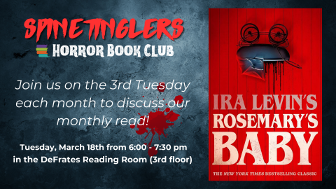 The Spinetinglers Book Club meets on the third Tuesday of each month for discussion of a different horror book. If you're a fan of ghosts, vampires, or other spooks and ghouls, this book club is for you!