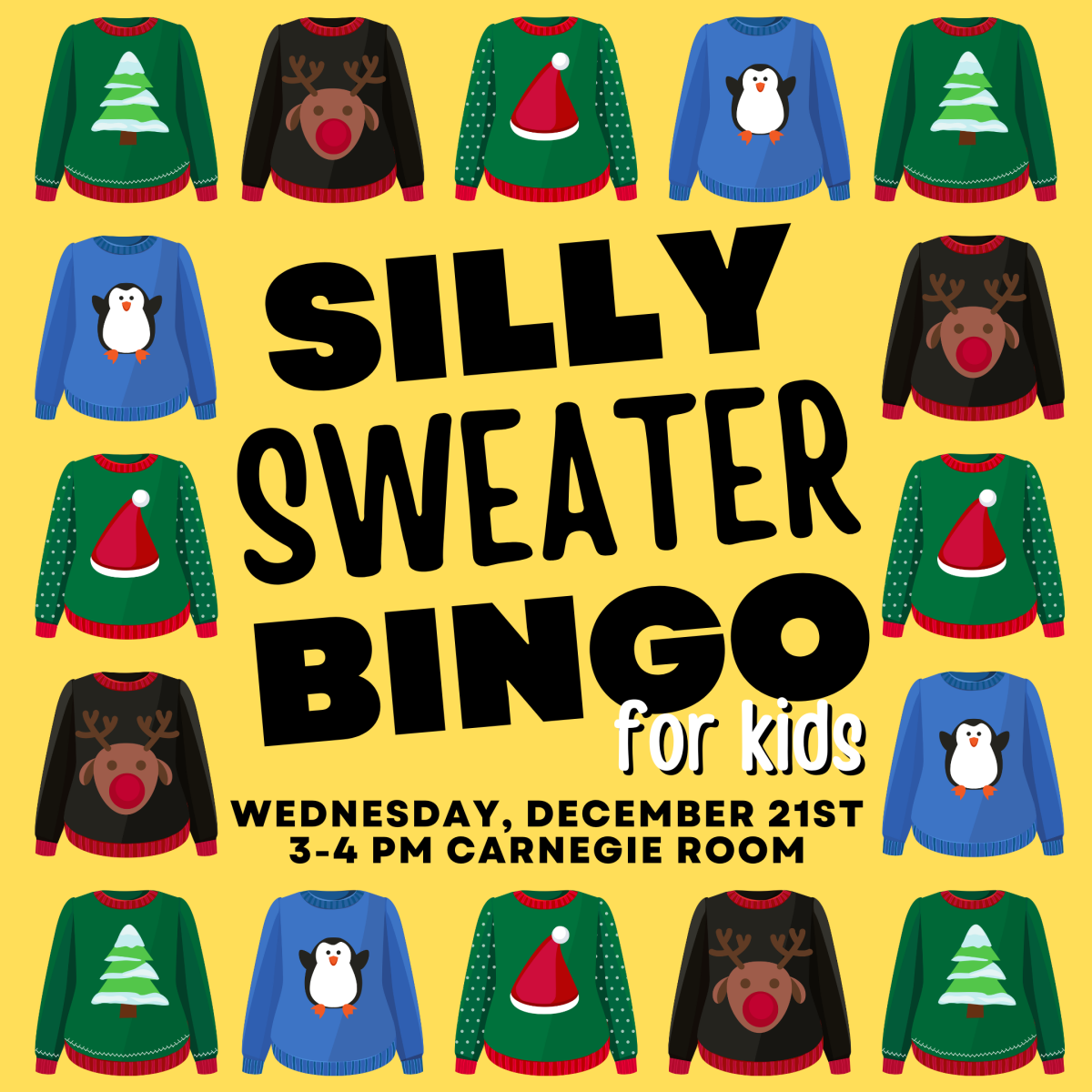 Silly Sweater Bingo for Kids Wednesday December 21 3-4 PM Carnegie Room